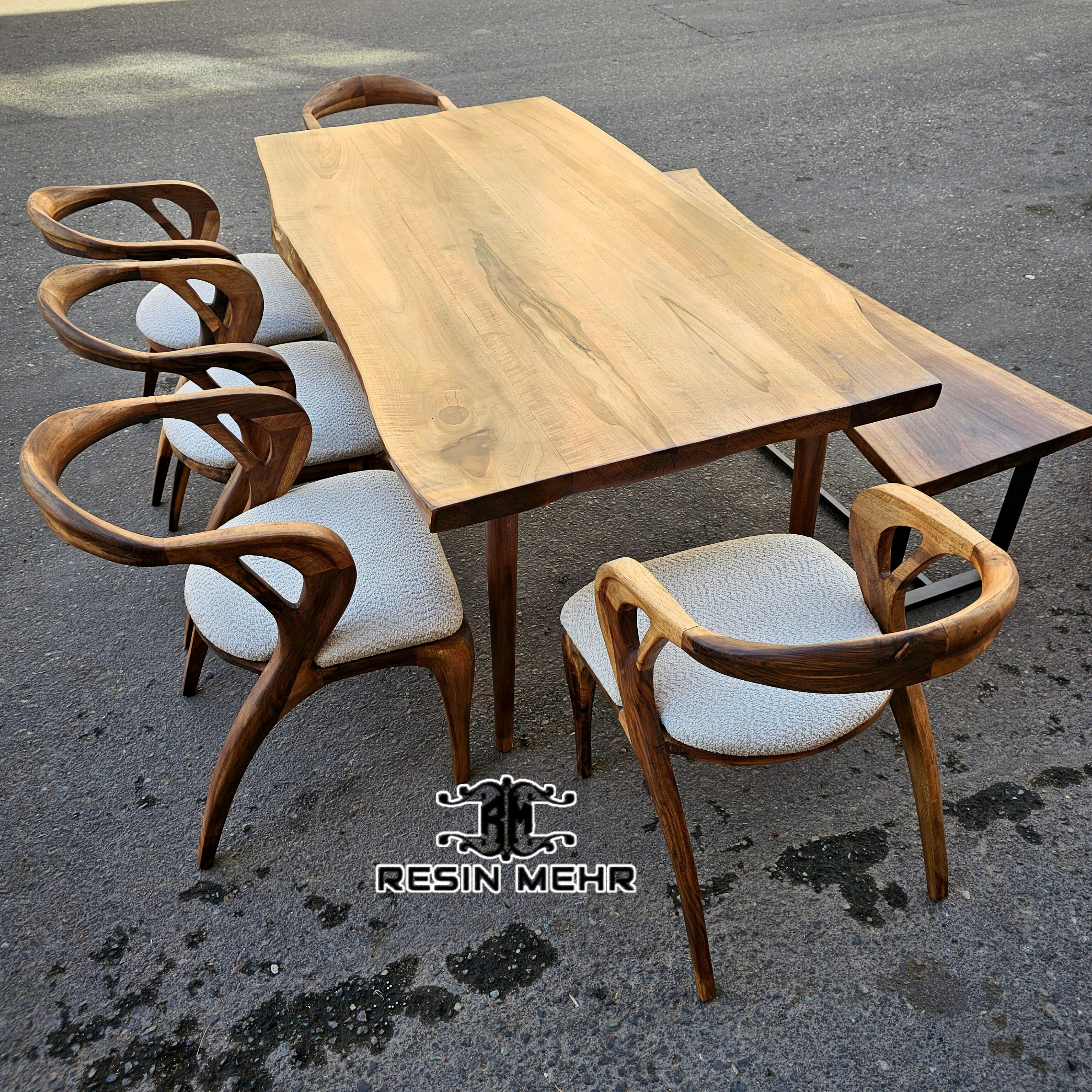 میز ناهارخوری ۸ نفره روستیک گردو با صندلی روما