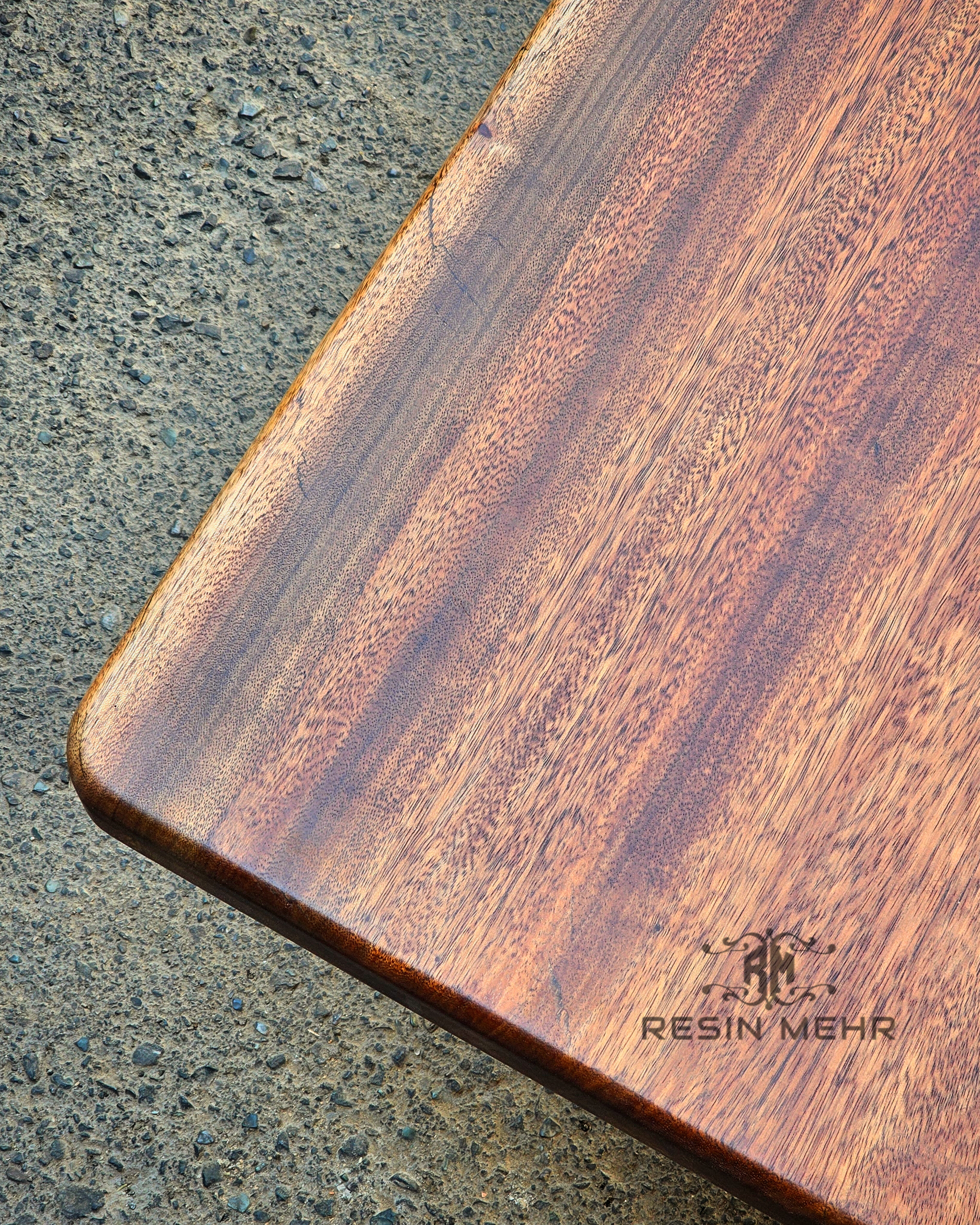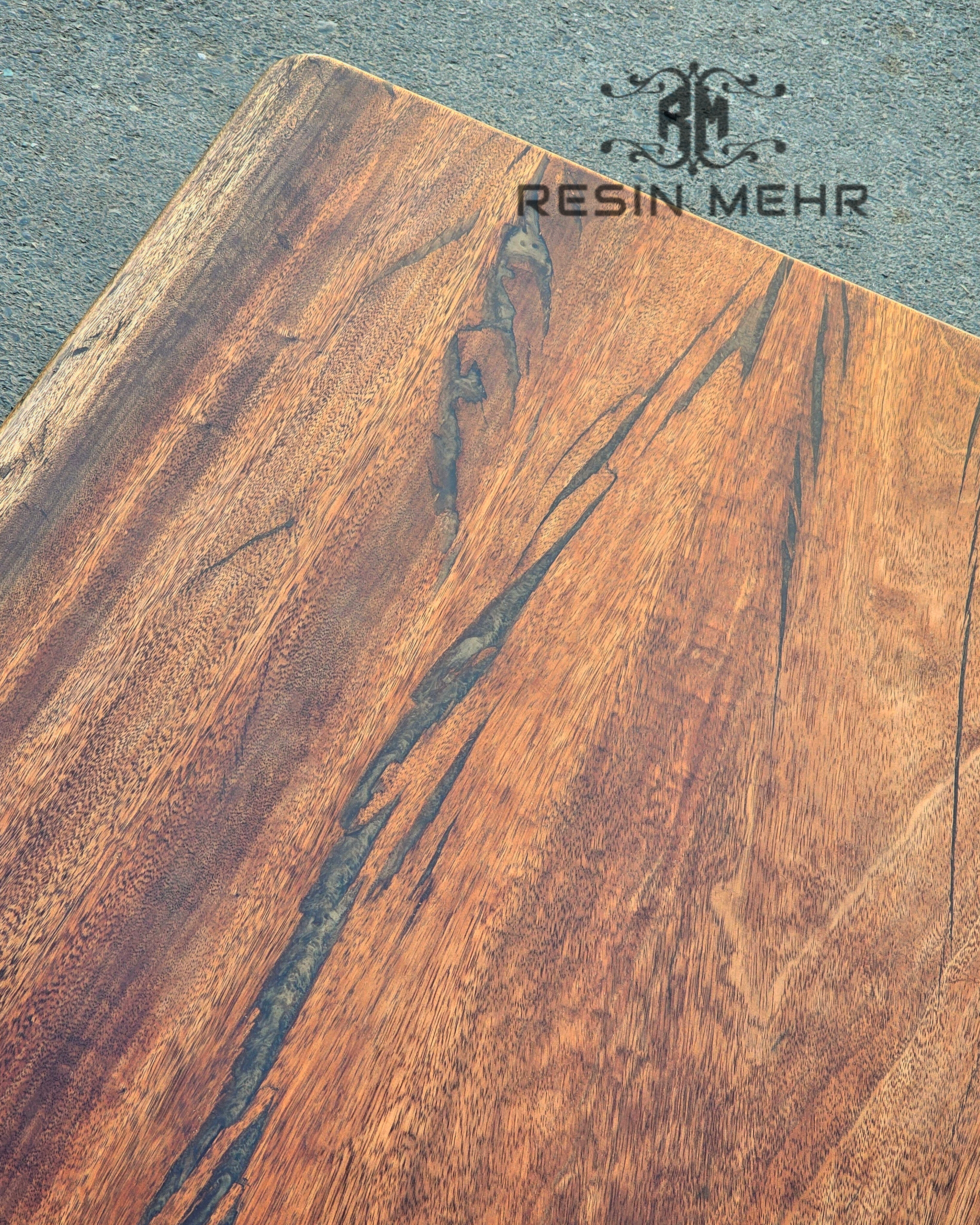 توجه: ترکها و حفرههای چوب با رزین اپوکسی قهوه ای صدفی ترمیم شده است.