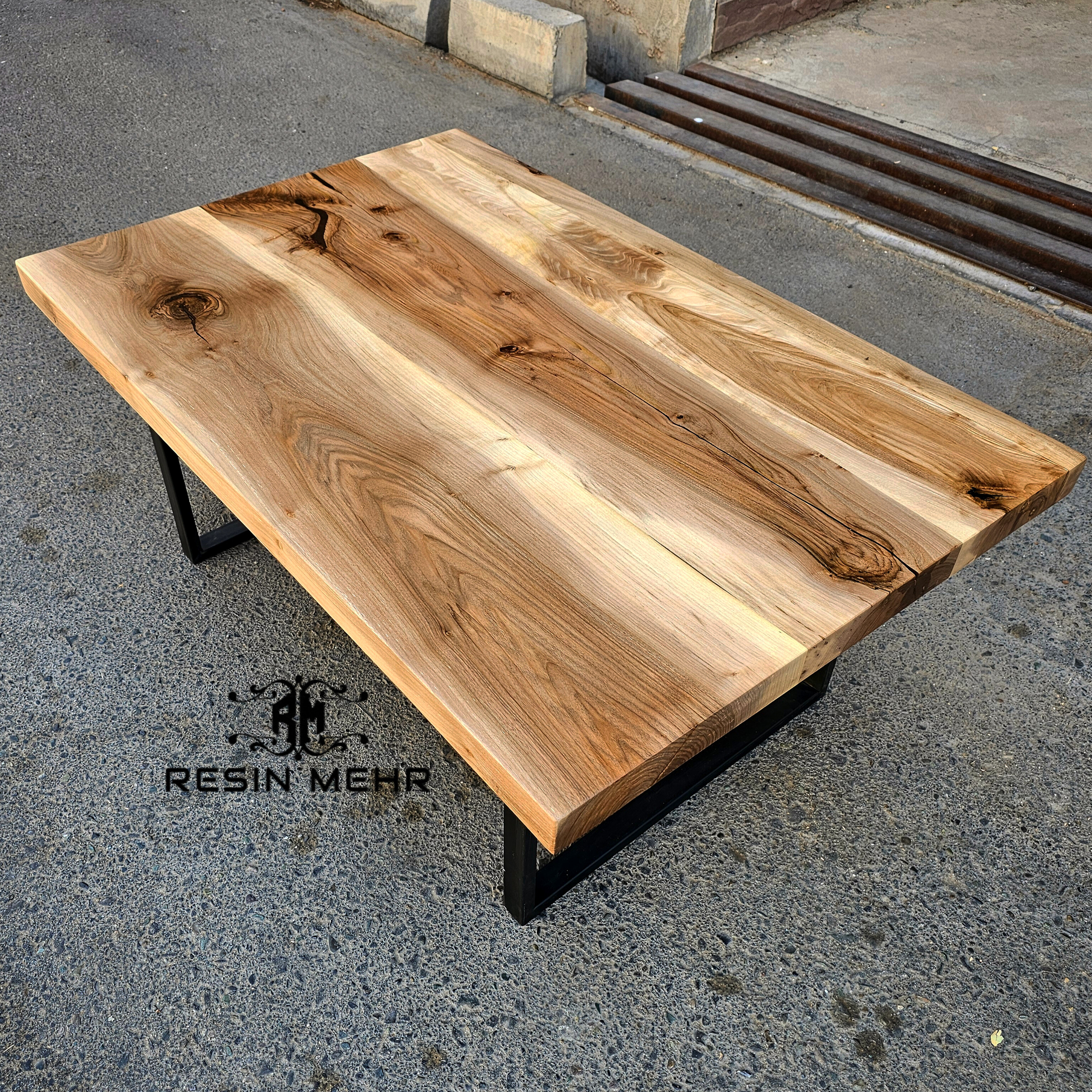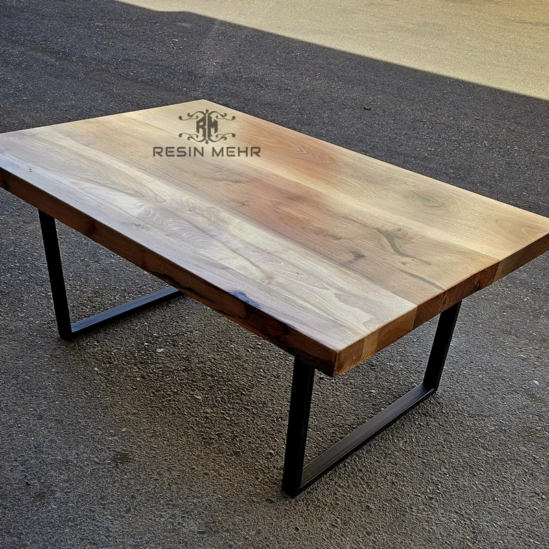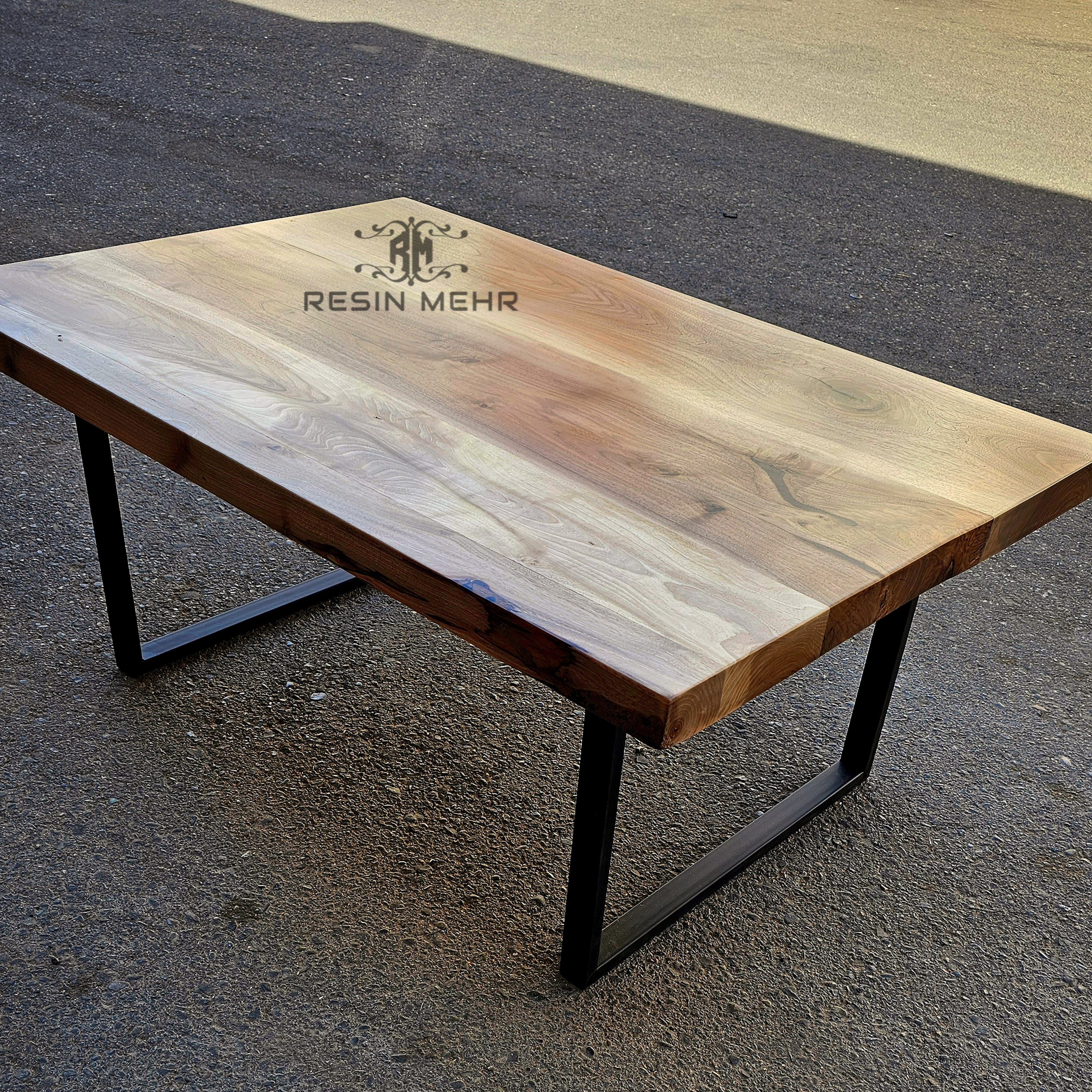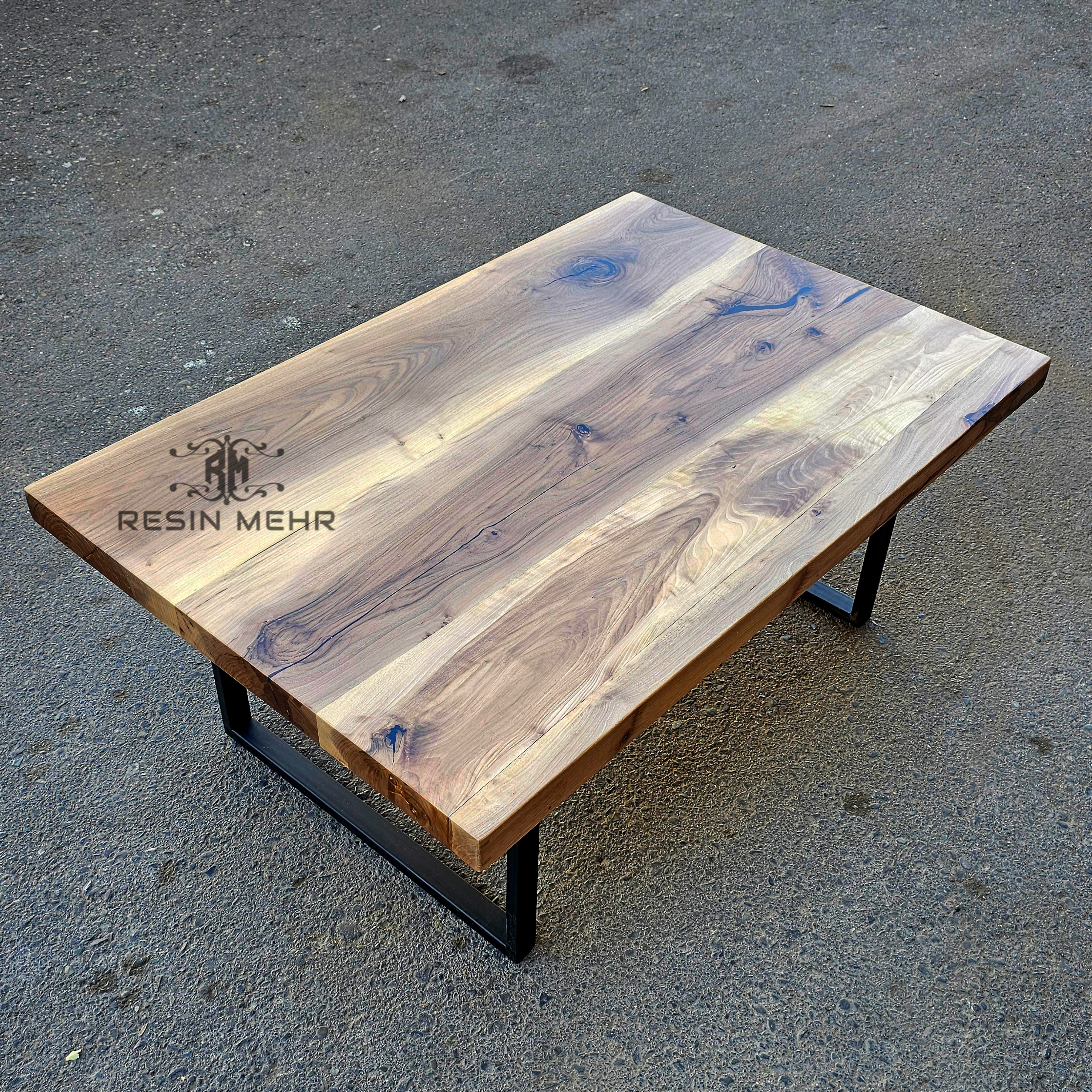 جلو مبلی کلاسیک بی نظیر و بسیار زیبای چوب گردو،طول 120در عرض 80 سانتی متر ،پوشش روغن گیاهی مخصوص چوب،ترمیم شده با رزین اپوکسی به همراه پایه فلزی پروفیلی ساخته شده با پروفیل ۴۰ در ۲۰ و رنگمشکی