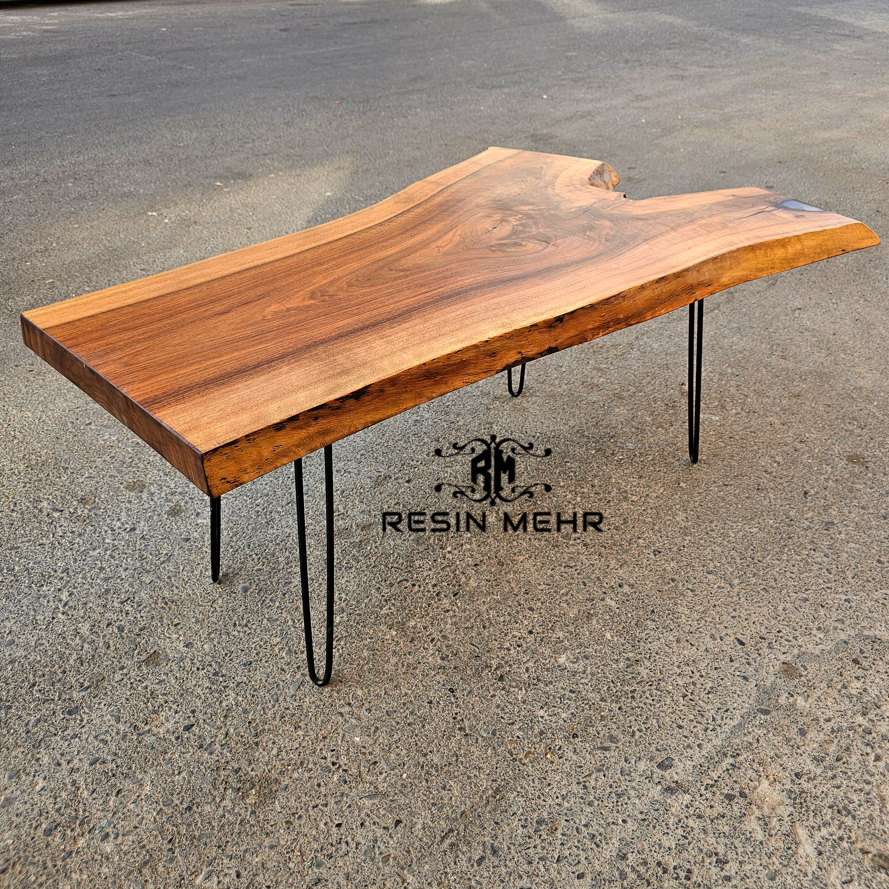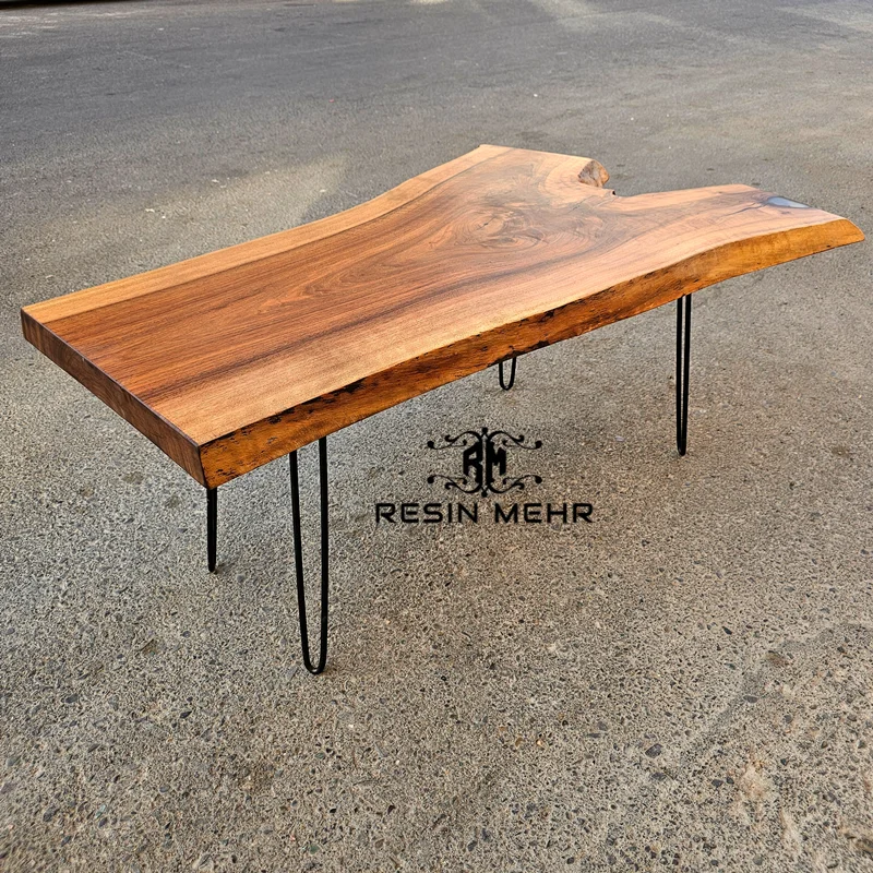 جلو مبلی روستیک اسلب بی نظیر و بسیار خاص و نادر چوب گردو،طول 120در عرض کمینه 50 و بیشینه 80سانتی متر،بسیار ابعاد خاص ،پوشش روغن گیاهی مونوکوت مخصوص چوب،ترمیم شده با رزین اپوکسی پایه فلزی سنجاقی ارتفاع نهایی 50 سانتی متر