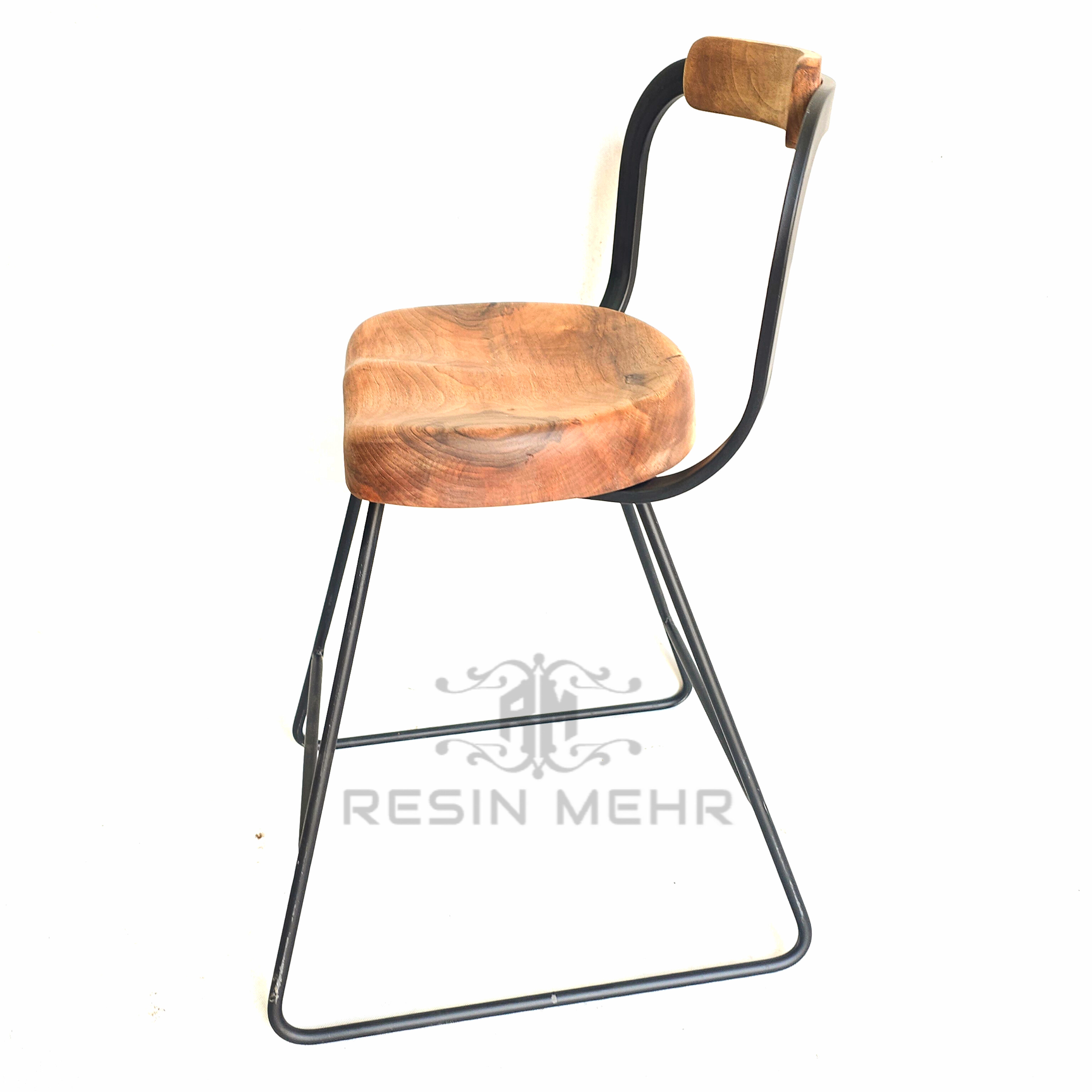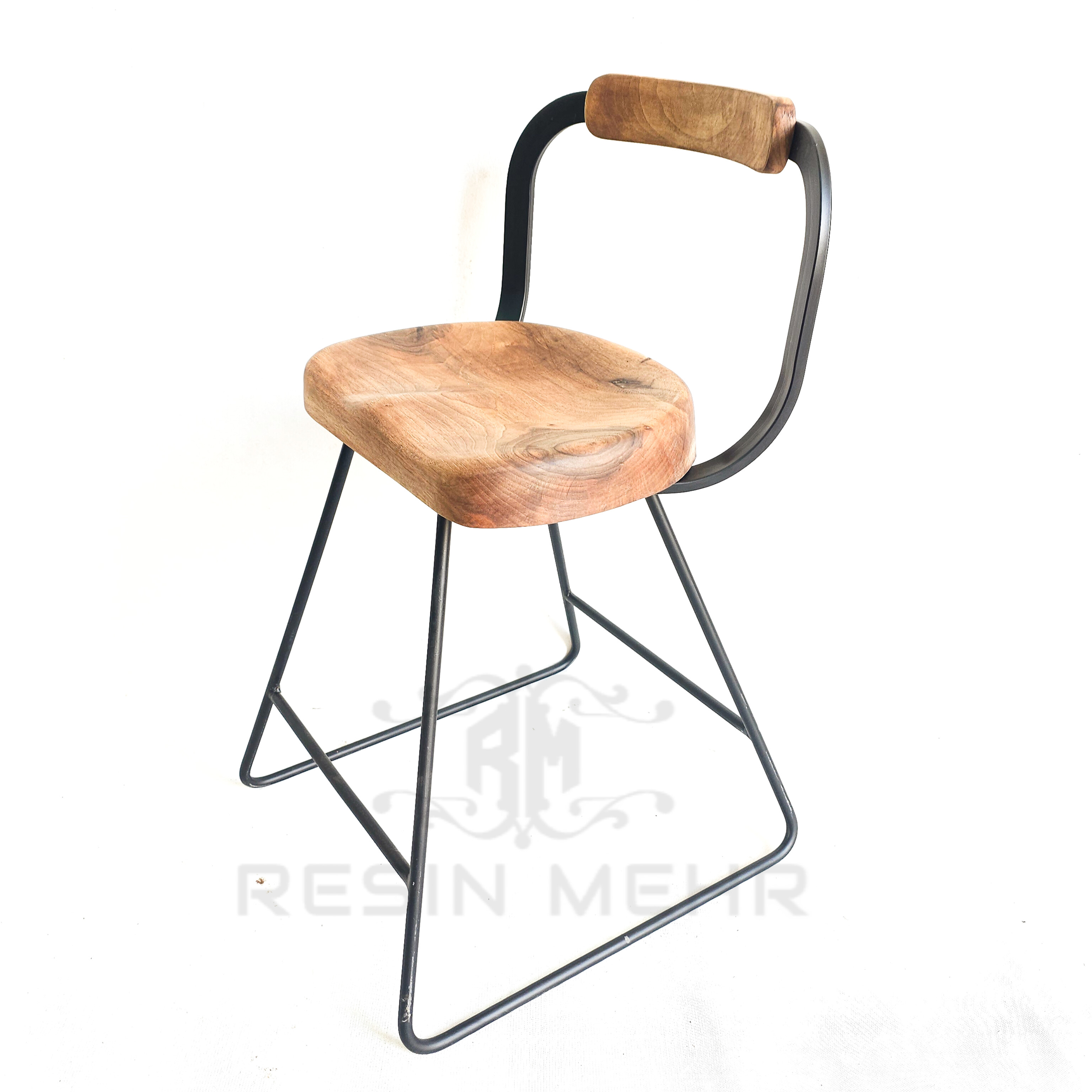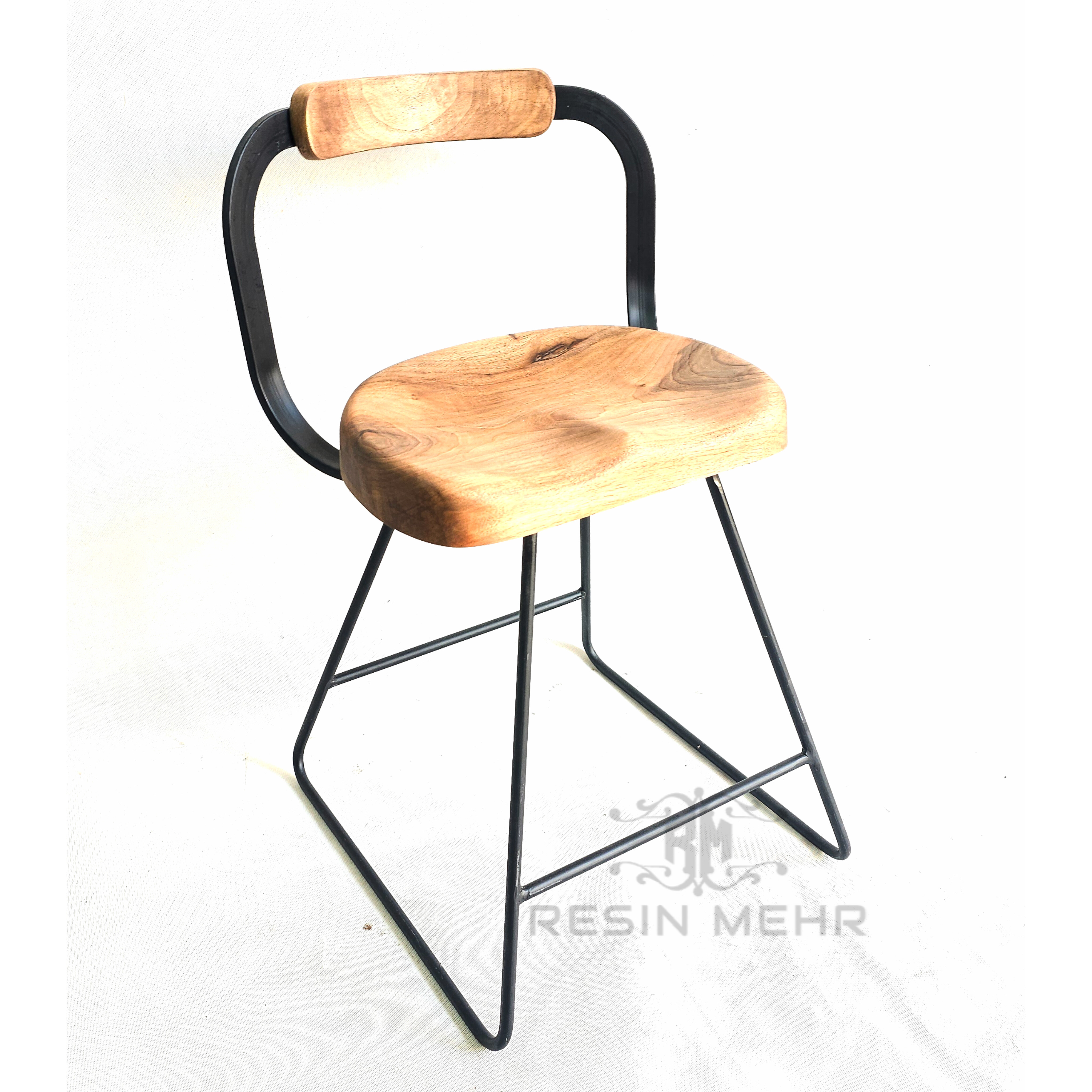صندلی کانتر و نهارخوری پشتی دار با پایه فلزی و نشیمن چوب طبیعی گردو چهارسو