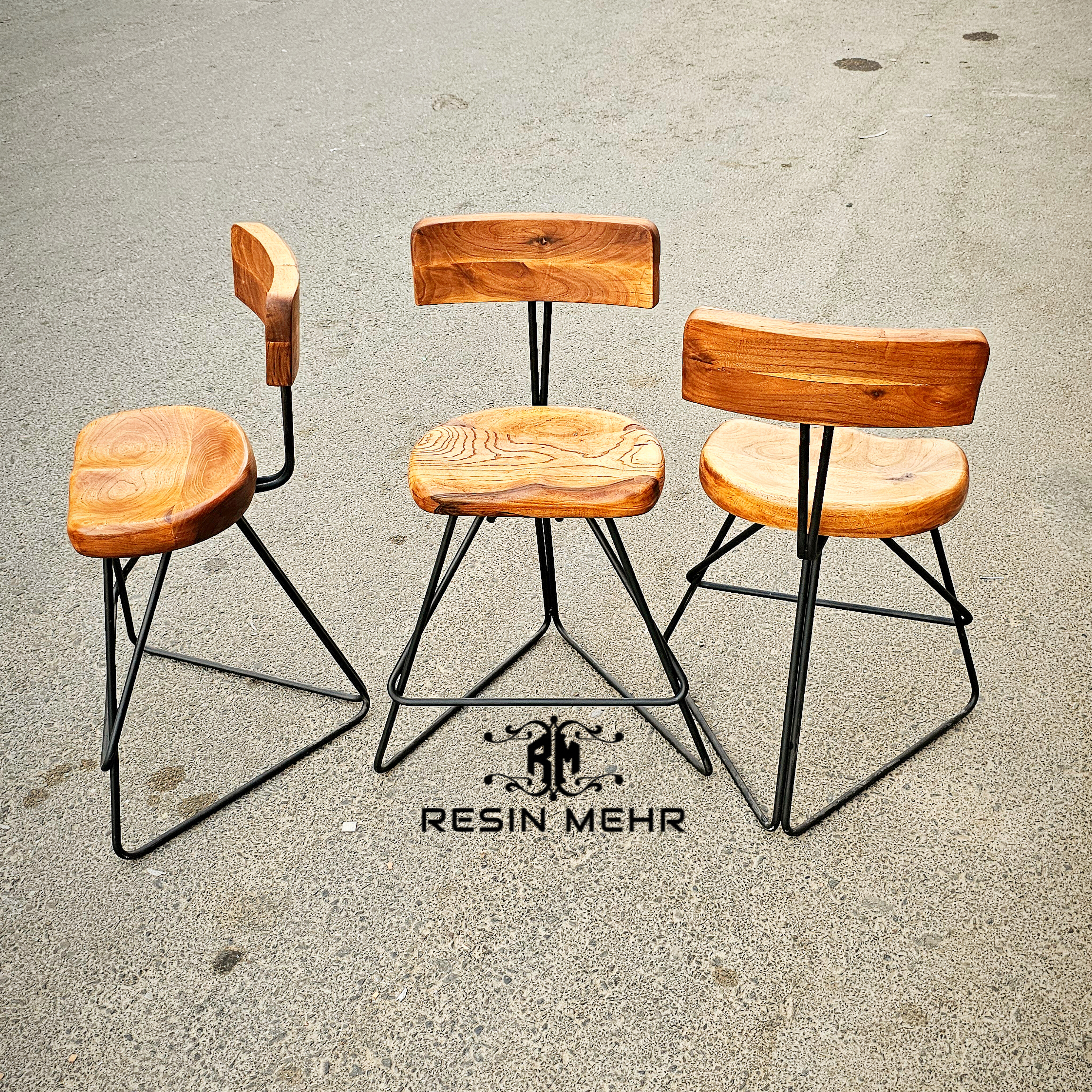 صندلی پشتی دار کانتر، اوپن، میزغذاخوری با نشیمن چوب گردو طبیعی خوش طرح و نقش درجه یک ایرانی است. اندازه نشیمن حدود 30 الی 40سم است و از پوشش روغن گیاهی درجه1 طبیعی مخصوص چوب برای پوشش سطح چوب استفاده میشود. پایههای این صندلی فلزی با میلگرد 12میل و قابل تنظیم است و در رنگ مشکیِ کورهای سوپرمات با ارتفاع 70 و 50سم برای عزیزان رزینمهری تولید میشود.