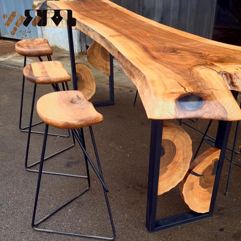میز اوپن سبک روستیک که از چوب با دوام و زیبای گردو است و کیفیت و رنگ خاص آن طرفداران خاص خود را دارد. این میز غذاخوری تمام چوب گردو در ابعاد «طول 280 عرض 60 تا 80 و ارتفاع 90 سانتیمتر» ساخته میشود. با توجه به ارتفاع این میز که به 90 سانتیسانتیمتر میرسد، میتوان از آن برای اوپن، میز بار و کانتر استفاده کرد. همینطور با استفاده از صندلیهایی در ارتفاع 70 سانتیمتر و قابل تنظیم، میتوان این میز را به میز ناهارخوری نیز تبدیل کرد. جنس پایهها فلزی پروفیل 60*30 و به رنگ مشکی الکترواستاتیک کورهای میباشند. پوشش نهایی کار نیز روغن مونوکوت بلژیک کاملا گیاهی است.