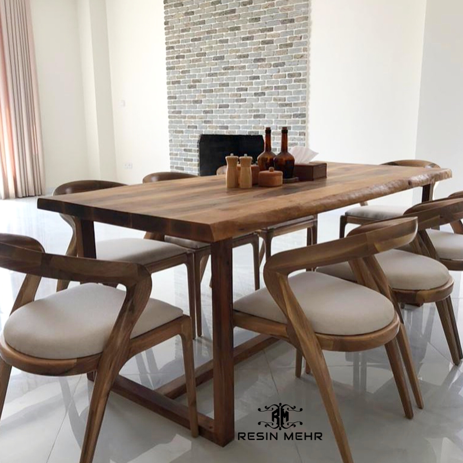 میز ناهارخوری سبک روستیک چوب گردو، جنس این میز ناهار خوری از چوب زیبا و خوش رنگ گردو میباشد که در ابعاد (ارتفاع ۷۵، طول ۲۰۰ و عرض حدودا ۹۵ سانتیمتر) ساخته میشود. پوشش کار«روی میز» پلی اورتان مات می باشد(با توجه به سفارش شما). پایههای میز از جنس همان چوب گردو است. صندلی های این محصول از مدل تمام چوب روما می باشد که این صندلی نیز در مجموعه ما موجود می باشد.