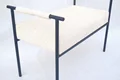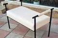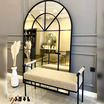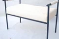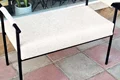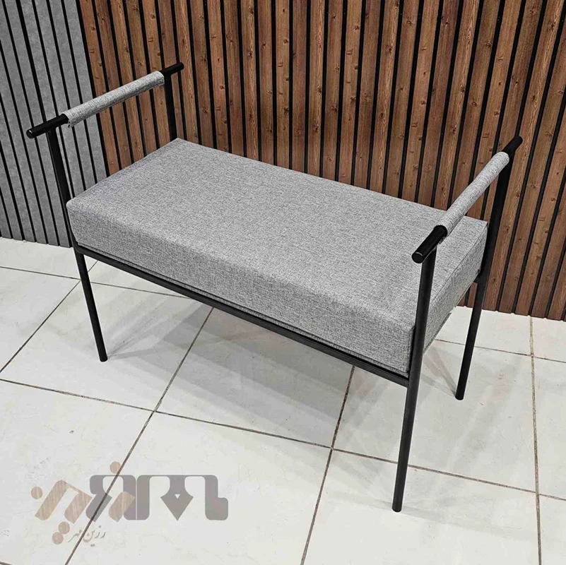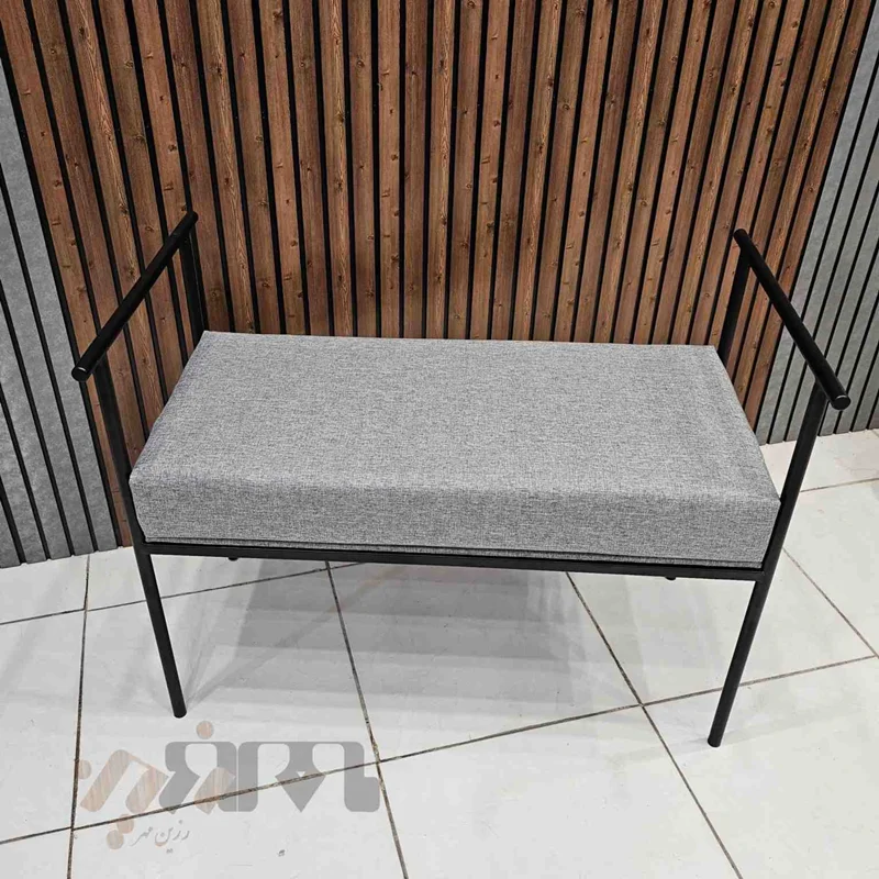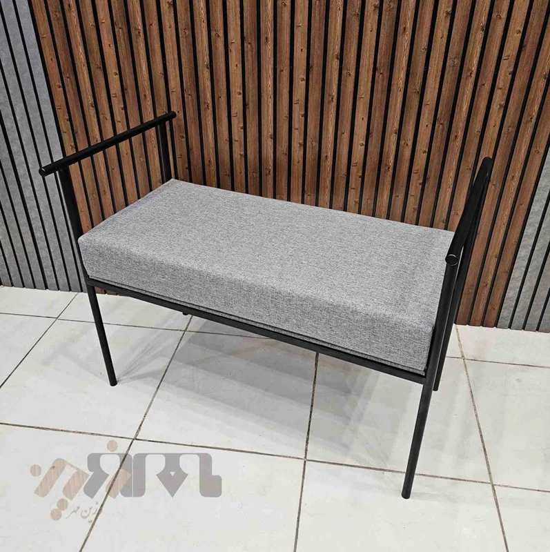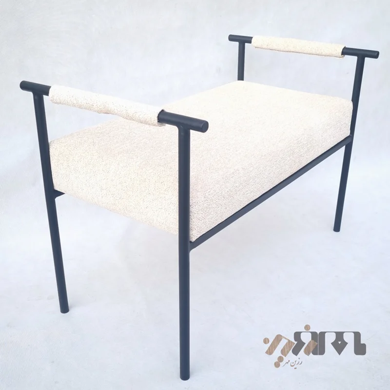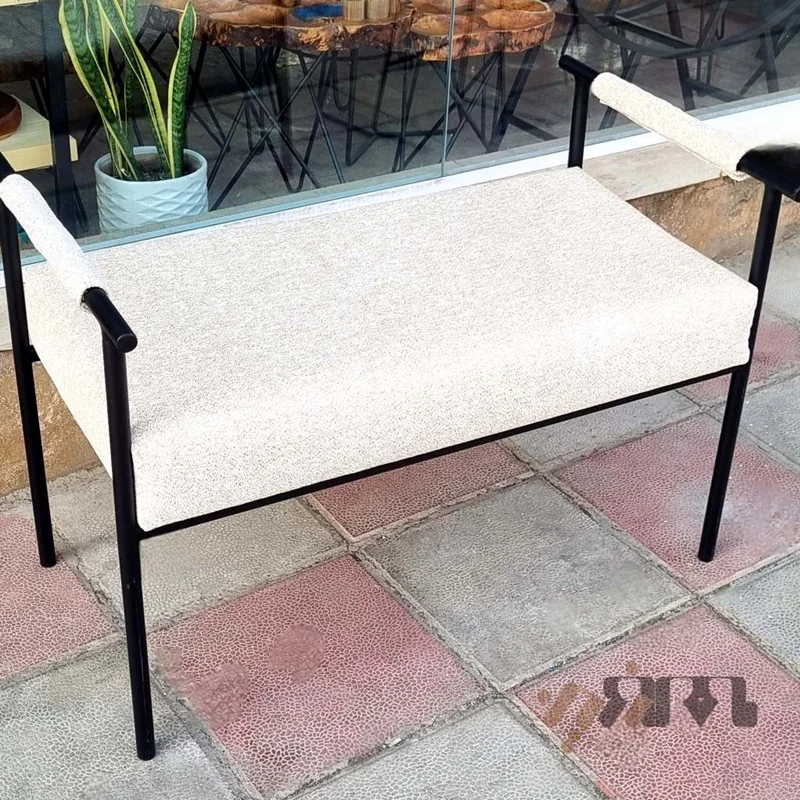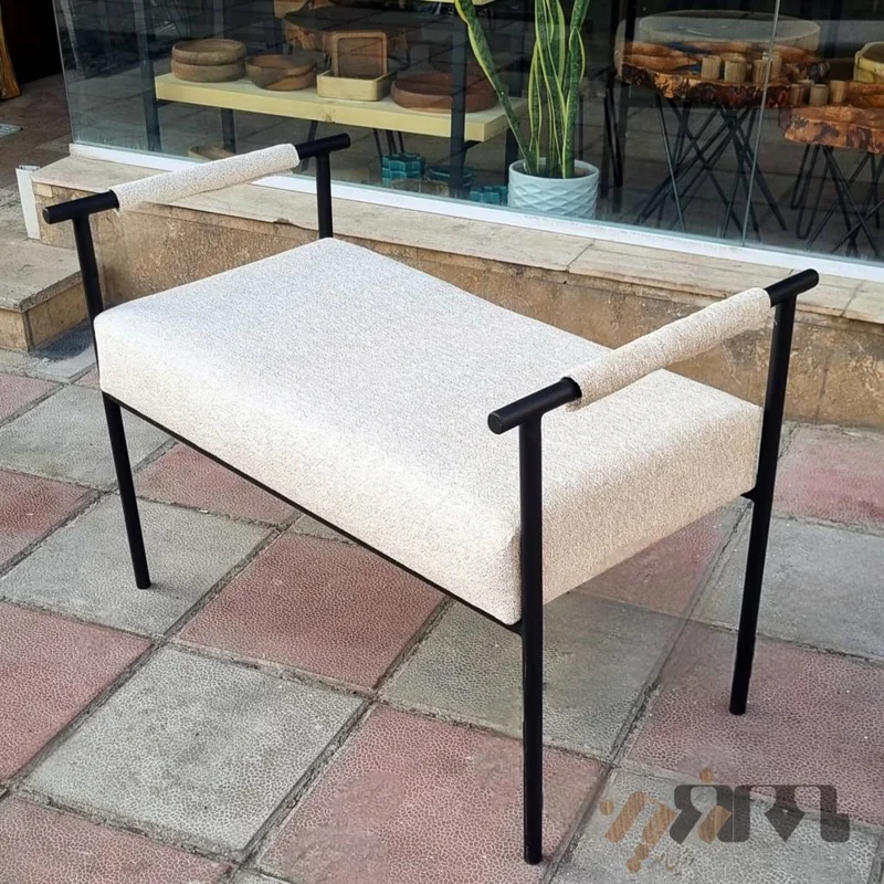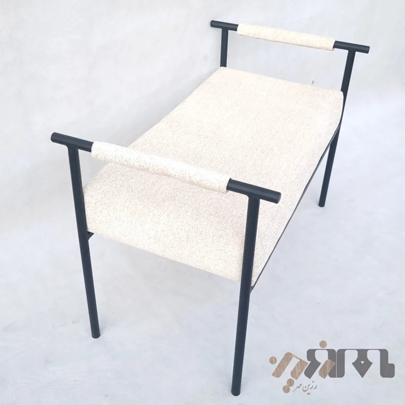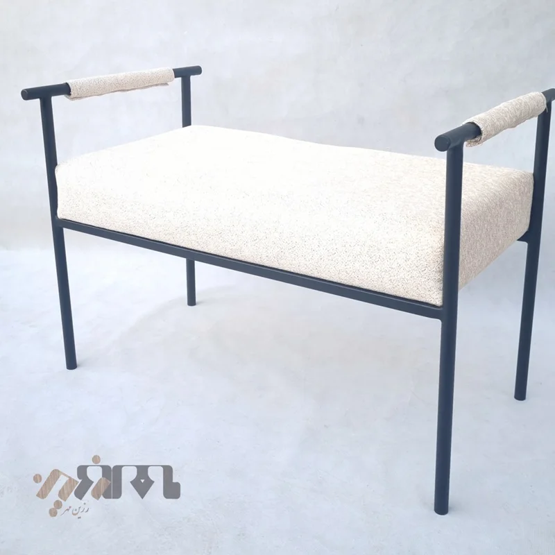 نیمکت فلزی با نشیمن اسفنجی، بدنه نیمکت فلزی بوده و از لوله و پروفیل سبک که مقاوم سازی شده است، ساخته شده. ابعاد نیمکت (طول 100، عمق 50 و ارتفاع 50 سانتیمتر) میباشد. در نشیمن کار نیز از پارچهی نرم و اسفنج 35 کیلویی مرغوب استفاده شده است.