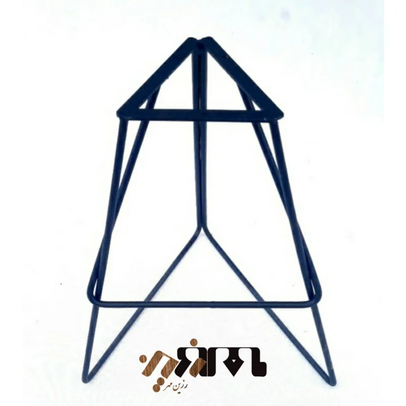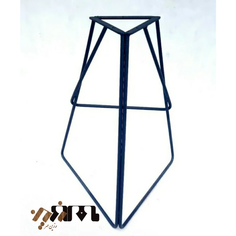 پایه صندلی فلزی سنجاقک که جنس آن میلگرد فلزی فابریک 12 میلیمتر با ابعاد (ارتفاع 65 و مثلث نشیمن زیر چوب: 20 سانتیمتر) ساخته میشود.این پایه به رنگ مشکی الکترواستاتیک سوپرمات است که توسط کوره رنگ میشود. الکترواستاتیک کورهای مقاومت خیلی بالاتری نسبت به رنگهای پیستولهای دارد.