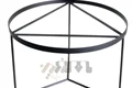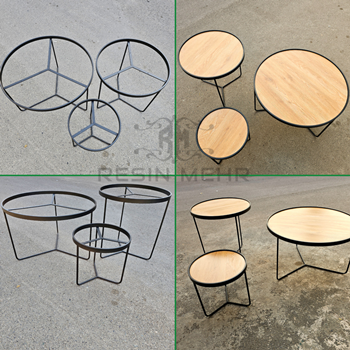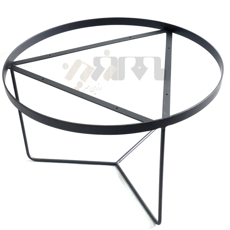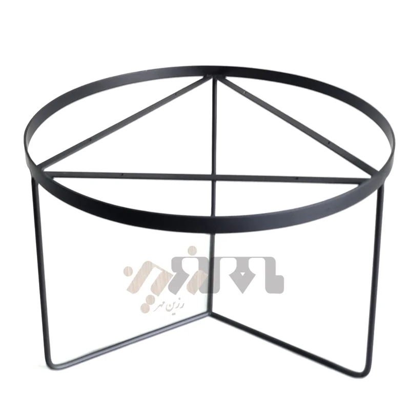 پایه جلومبلی میلگرد، از جنس میلگرد 12 میلیمتر و تسمه میباشد که حلقه بالا از تسمه 3 سانتیمتر و با ضخامت 6 میلیمتر ساخته شده است. این پایه میز در ابعاد جلومبلی (ارتفاع 45 و قطر دایره م 80 سانتیمتر) و عسلی(قطر 40 و 50 و 58 و ارتفاع 40 تا 50 سانت) میباشد. این پایه به رنگ مشکی الکترواستاتیک سوپرمات است که توسط کوره رنگ میشود و مقاومت رنگ خیلی بالاتری نسبت به رنگهای پیستولهای دارد.