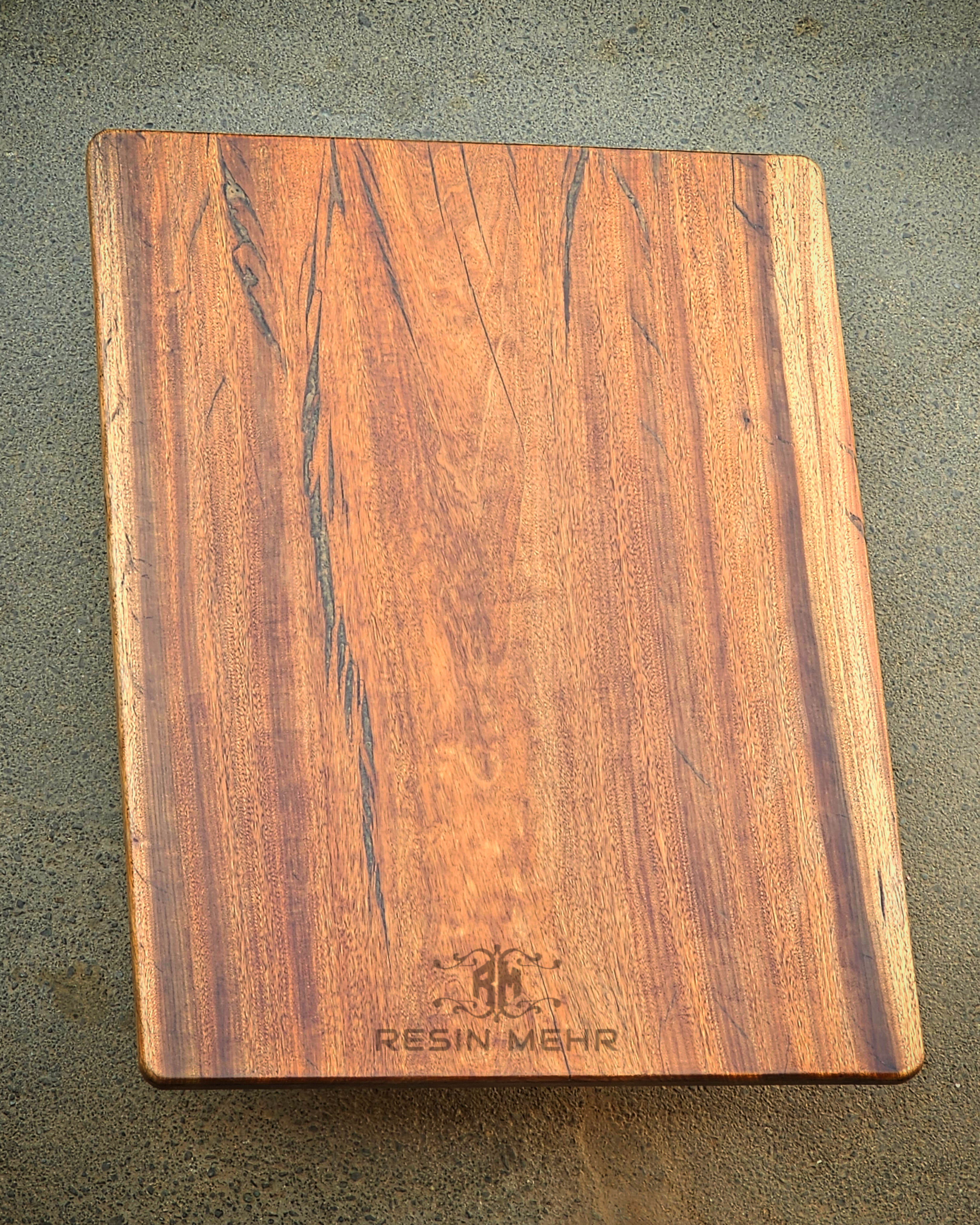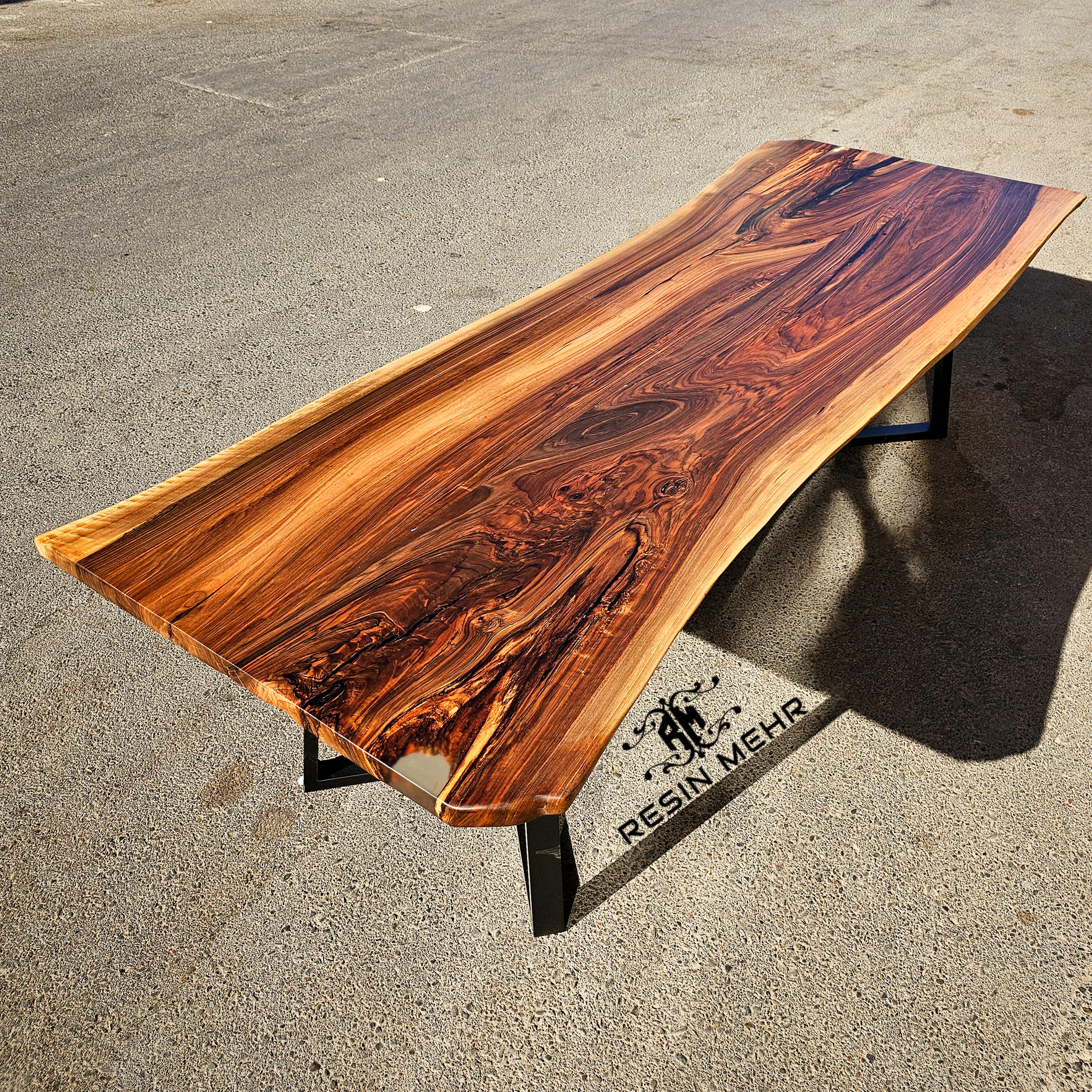 میز ناهارخوری ۴ نفره چوبی رزینی ساخته شده با چوب چنار خوش طرح و نقش و رزین اپوکسی رنگ سفید صدفی