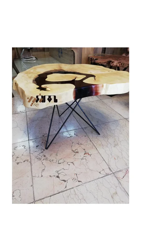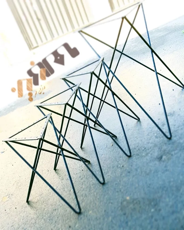 پایه فلزی میز عسلی و جلو مبلی با طرح ستارهای، از جنس میلگرد آهن با کیفیت عالی به قطر 10 مم است. در سه سایز(ارتفاع) 40، 45 و 50 سم ساخته میشود. رنگ این پایهها که مشکی اکترواستاتیک است، توسط کوره رنگ میشوند و مقاوت رنگ خیلی بالاتری نسبت به رنگهای پیستولهای دارند. این پایهها با سه عدد پیچ |(روپیچ توپیچ چوب یا پیچهای خودکار چوب) به میز وصل میشوند که اتصال با روپیچ توپیچِ مخصوصِ چوب، خیلی بهتر و مقاومتر است