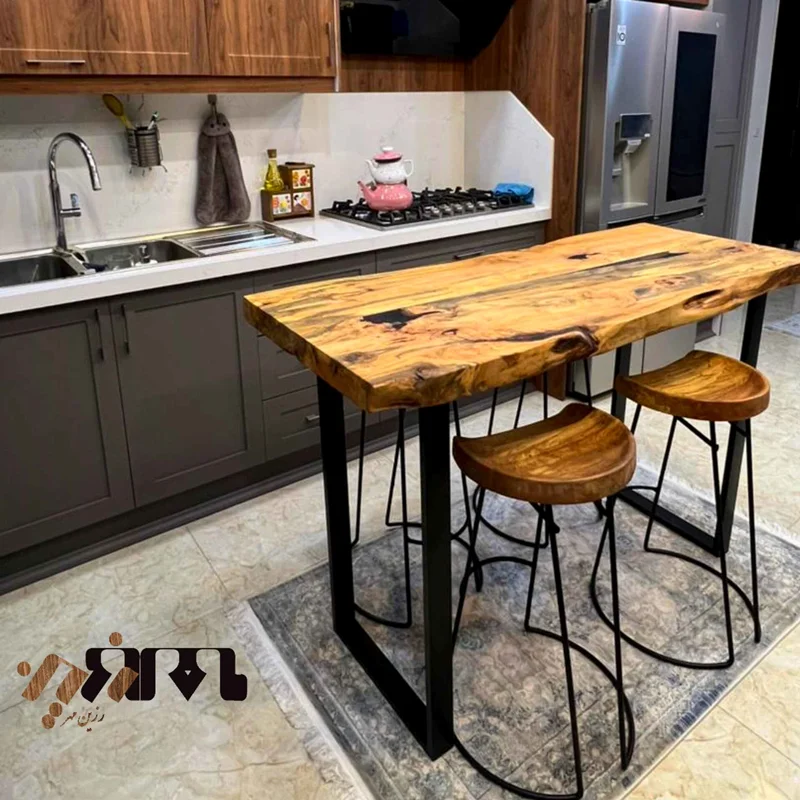 در حالیکه چوب خالص—even with oil/wax finish—در برابر رطوبت آسیبپذیرتر است. میز چوب–رزین در فضای آشپزخانه، کافیشاپ یا مناطق مرطوب عملکرد بهتری دارد.