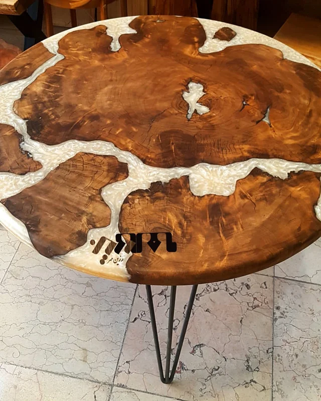میزهای چوب–رزین به دلیل استفاده از رزین اپوکسی جلوهای هنری و منحصربهفرد دارند.