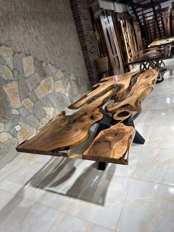 - خانه: در خانه، این میزها میتوانند بهعنوان میز ناهارخوری یا میز پذیرایی، جلوهای طبیعی و مدرن به فضای شما بدهند. رنگهای گرم چوب و رزین در کنار مبلمان مدرن یا کلاسیک، هماهنگی خاصی ایجاد میکنند.