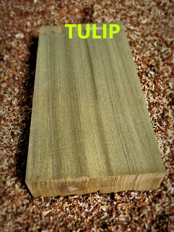 چوب تولیپ (TULIP)، گونهای سخت چوب، با رنگ مایل به سبز و زرد میباشد که نمونههای دو رنگ این چوب زیاد دیده میشود. نوع سبز که طیف آن کم و زیاد میشود خیلی پر طرفدار و با ارزشتر از نمونههای دو رنگ آن میباشد. ولی به صورت کلی از لحاظ قیمتی در رده چوبهای ارزان (نسبت به پادوک و ساج اوکان) محسوب میشوند. چوب بسیار سبک با وزنی حدود ۵۰۰ کیلوگرم در متر مکعب دارد اما بسیار مستحکم است و در بسیاری از موارد از آن استفاده میشود و خیلی راحت میتوان آن را رنگ آمیزی کرد.